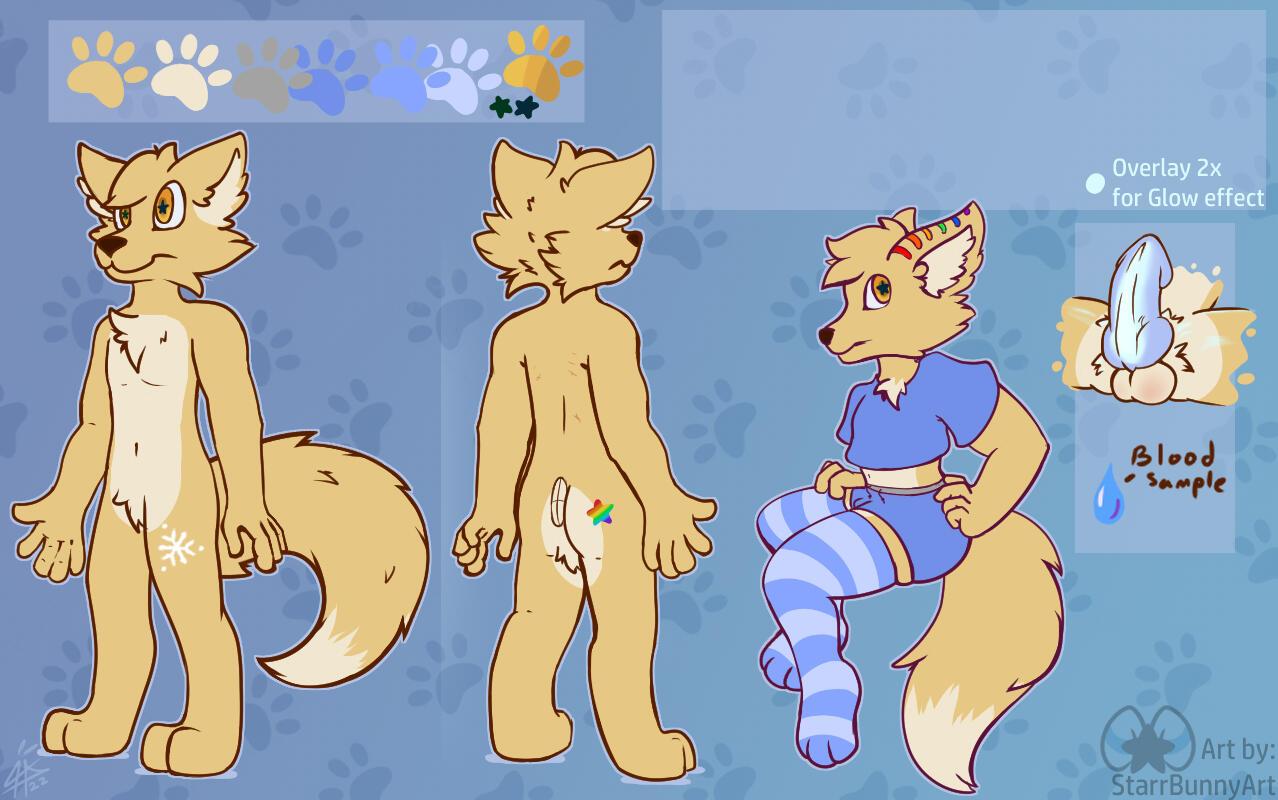 complete reference sheet consists of 2 full bodies(front & back) and 1 body partboth ref sheets include a free color palette, background, and info box. Customers may request for info to be added by artist.